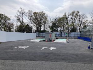組合敷地西側において、仮設計量機の据付け工事が完了しました。